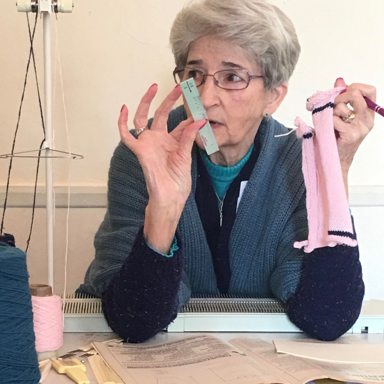 Irina is showing me how to program a chart from img2track into the knitting machine. It took her seconds. Maybe someday I’ll be ready to do that too