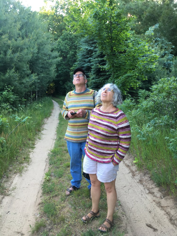 As for my husband and his sweater, every time he puts it on, it bunches up at the back of his neck and I have to yank it down. It looks fine once I’ve pulled it into place, but I think I probably should have put in more extra rows at the back, maybe 6 additional rows to bring it to 20 instead of 14. At least he usually puts it on with the front in front, unlike the original sweater I used as a template, which has now been replaced by his machine-knit, stripes-of-many-plant-dyed-colors, raglan sweater as his new favorite sweater.