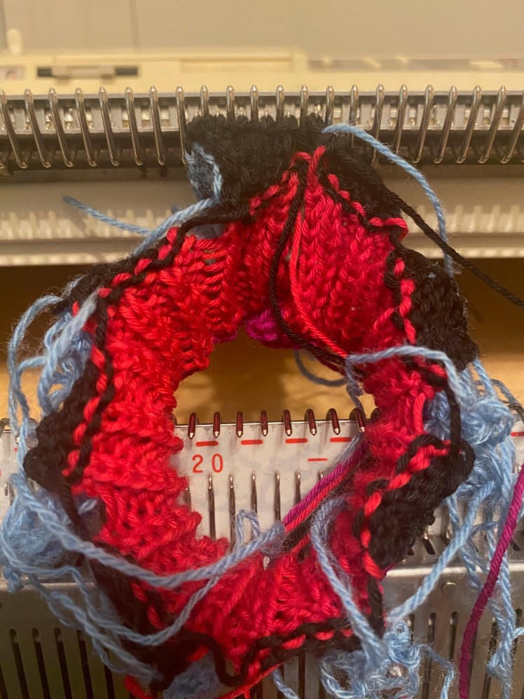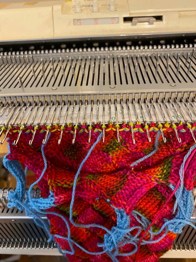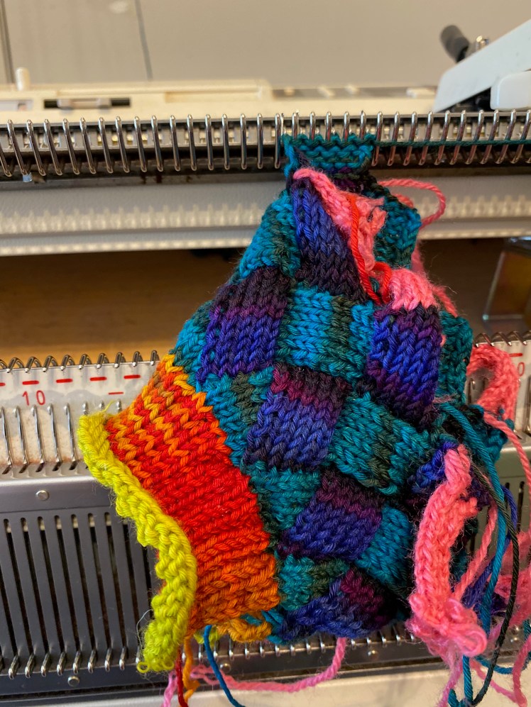 Such an explosion of color. It looks like machine knitting requires much manipulation.