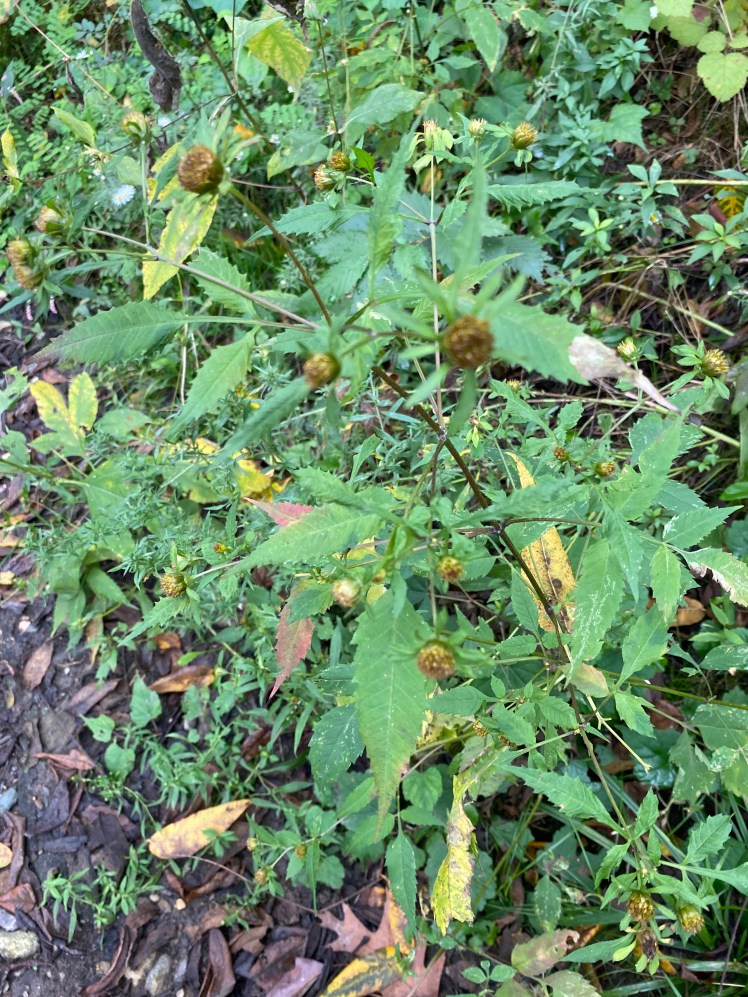 Another of the plants that was now in season was an unprepossessing plant that looks like a weed, from which I got a strong burnt orange last fall. The plant looks a lot like pictures of common beggartick, so I will operate on the basis that that is what it is.