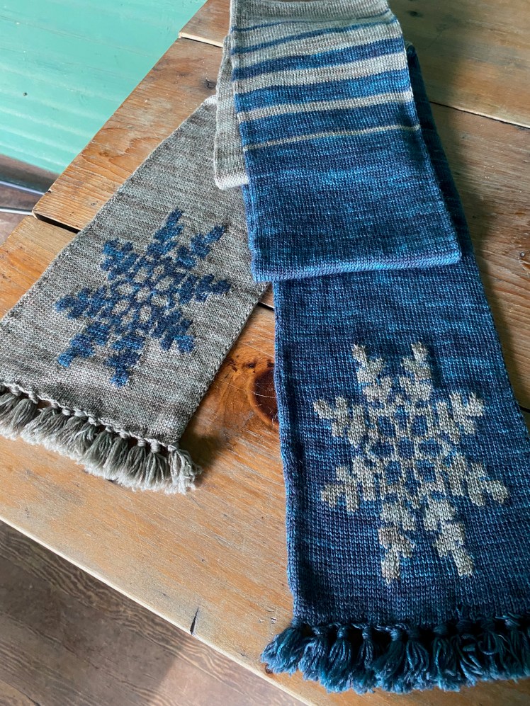 My husband’s birthday was first, according to the calendar, but neither of us could think of anything he particularly wanted as a birthday present, so I showed him a bag of plant-dyed yarn that I had dyed from found materials back when I was doing that. But the main yarn was several skeins of more recent indigo yarn that I dyed when a friend had made a big vat that she couldn’t use up by herself, so she invited me over to plunk in some of my yarn. Charles’ birthday passed with only a promise of a sweater, but June is too hot for sweaters anyway. I also wanted to give my sister a knitted birthday birthday present, but her birthday is on the first day of summer, and it was sweltering. The very idea of wearing a nice, toasty piece of woolen knitting in such conditions was enough to make you break out in hives, so that also would be postponed. But I did get to work on a calendar-motivated birthday present for my son-in-law, who had made me a Harry Potter wand for my own birthday.